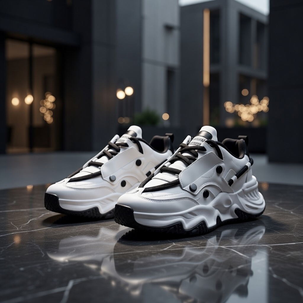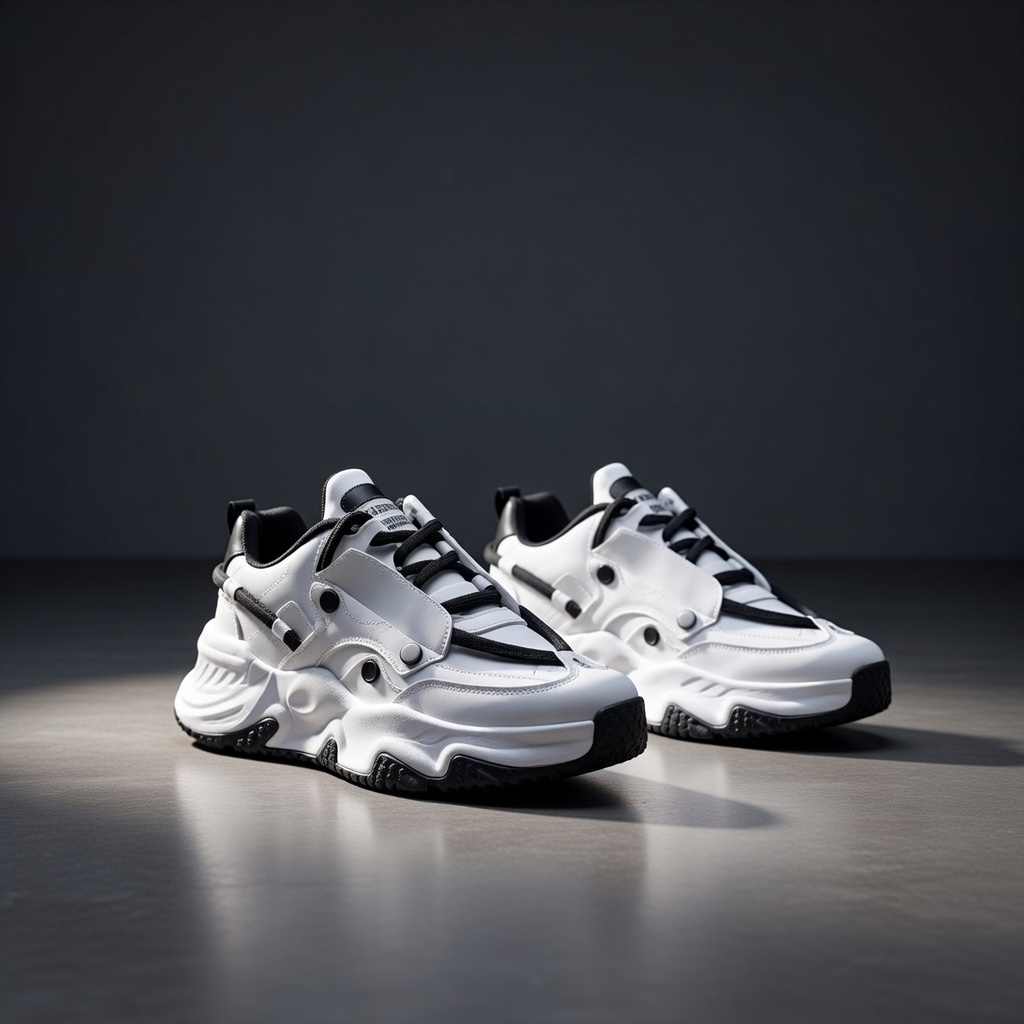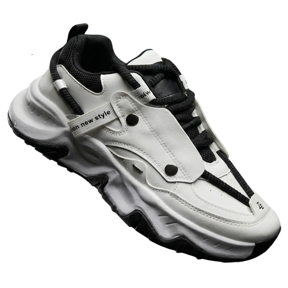 This pair is pure futuristic street energy: crisp white premium upper that stays clean and premium-looking, layered with sleek black accents on the straps, overlays, laces, and heel tabs for that sharp high-contrast pop. Massive chunky platform sole in black with textured grip for insane comfort and that oversized dad-shoe vibe, bold circular details and claw-like cutouts on the sides giving it an edgy, almost armored feel, plus those signature “Eclipse Claw” branding hits that make it stand out without screaming. It’s got that modern luxury-meets-streetwear flex—perfect for turning heads during Eid or any casual slay ✨🔥